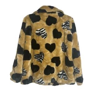 Anthropologie Maeve faux fur animal heart print Teddy jacket style. Pre owned, but in good condition.