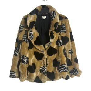 Maeve Faux Fur Zebra And Black Heart Print Coat Size S