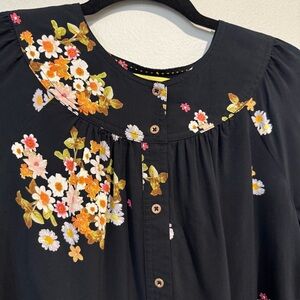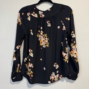 Maeve Floral Black Button Up Blouse Long Sleeve XS