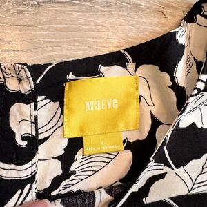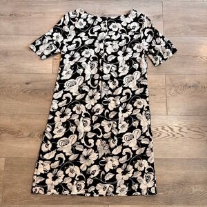 Maeve Floral Print Dress Short Sleeve Casual Black White Dress Size 4 Small