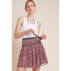 Maeve Floral Smocked Multicolor Boho Bohemian Festival Mini Skirt