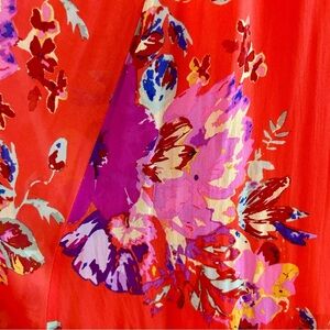 Maeve Grecia Ruffle Midi Dress Sz 0 Red Floral Asymmetrical Flowy Strappy Dress