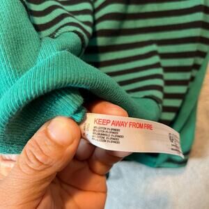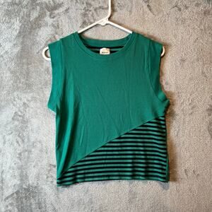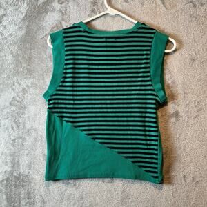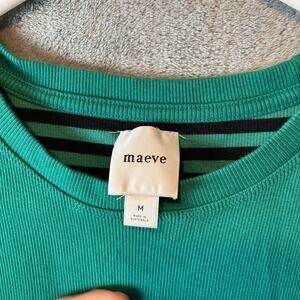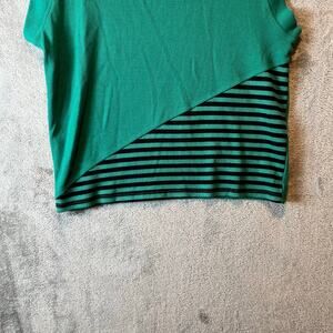 Maeve Green Asymmetrical Puff Sleeve Muscle Ribbed Tee Green Black Size Medium