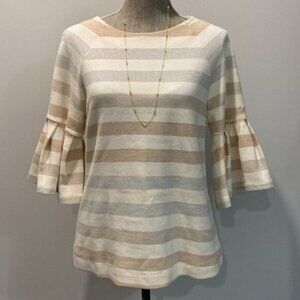 Maeve Helsa Metallic Striped Ruffle Sleeve top medium