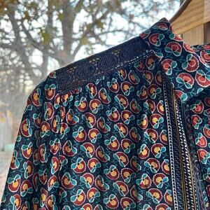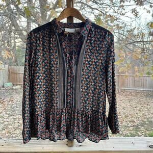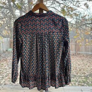 Maeve Janie Printed Peasant Blouse Long Sleeves Ruffle Hem Size 4