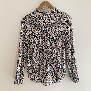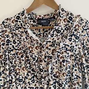 Maeve Katia Animal Print Shirt 4 Button Front Ruffle Anthropologie