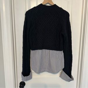 Elevate your style with this chic black cable knit sweater. Featuring a unique striped hem, it's perfect for any occasion.
