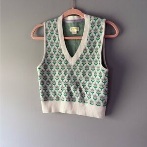 Maeve Knit Sweater Vest – Green & Pink Floral Pattern – Size XS