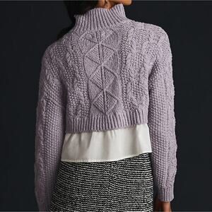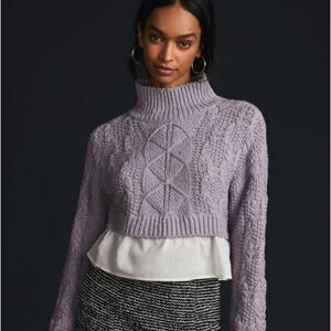 Anthropologie's Maeve Lavender Layered-Peplum Turtleneck Sweater is a chic and versatile knitwear piece designed for both style and comfort. It features a soft lavender hue that adds a feminine and serene touch to your wardrobe. The turtleneck provides warmth and elegance, while the layered-peplum silhouette creates a flattering and sophisticated shape.