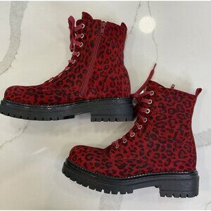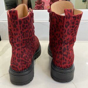 Maeve Leather Wine Leopard Print Combat Boots Size EU 38 US 7.5