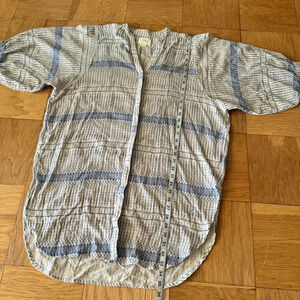 Maeve Lena Tunic Top Small Blue White Cotton Gauzy Loose Flowy