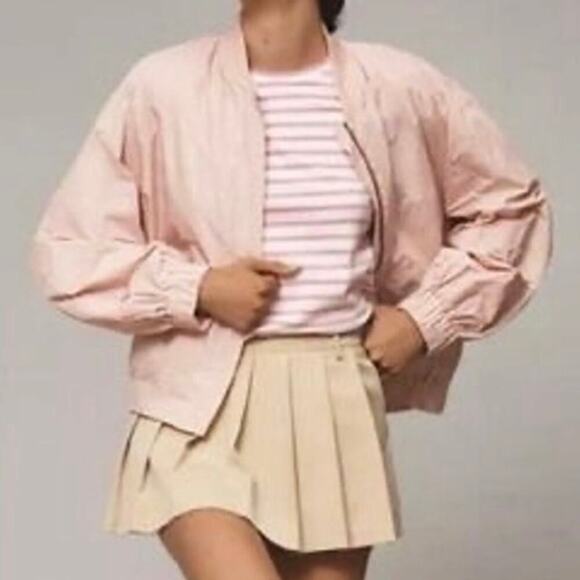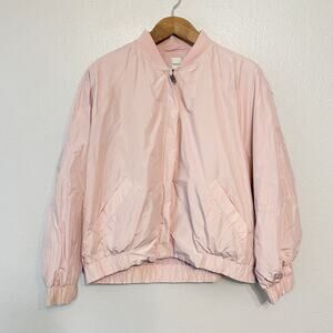 Maeve Light Pink Sheen Bomber Jacket Women's Size Large front zip