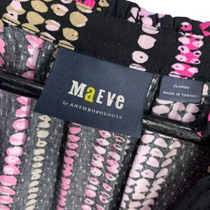 Maeve Long Sleeve Black Multicolor Partial Button Up Top XL