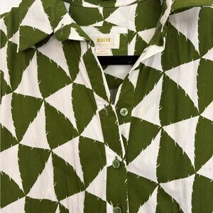 Maeve Long Sleeve Dress in Green and Cream Geometric Pattern