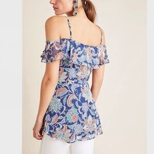 Maeve Mariposa Open-Shoulder Ruffled Floral Top Size 8 NWT