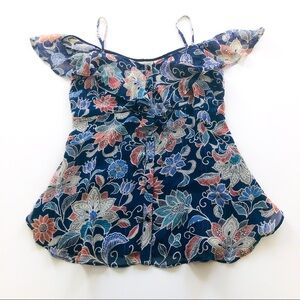Maeve Mariposa Open-Shoulder Ruffled Floral Top Size 8 NWT