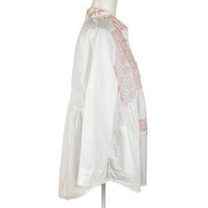 Maeve Mavis Patchwork Button-up Top Size M White Pink Cotton 3/4 Sleeves Pockets