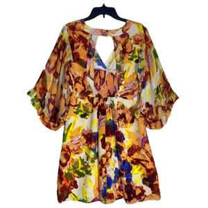 Featuring a beautiful watercolor floral design and kimono sleeves, this dress is a unique and stylish addition to your wardrobe.