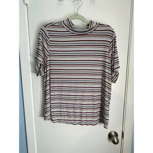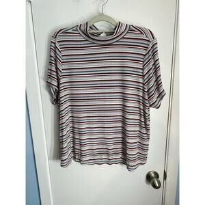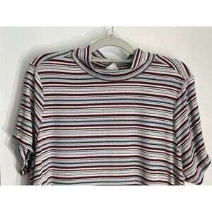 Maeve Mock Neck T-Shirt 1XL Blair Striped Ribbed Officecore Preppy Twee, excellent condition.