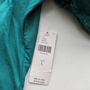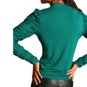 Maeve Mock Turtleneck Top Ruched Lace Long Sleeves Slim Fit Emerald Green- sz L