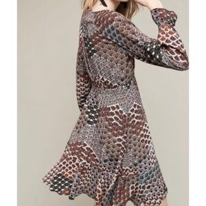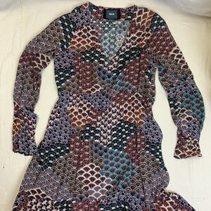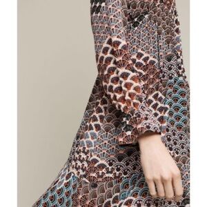 Size medium long sleeve midi dress by Maeve - Moroccan tile print - v neck - flattering cut - some elastic at waist for shape- flutter hem - gently worn, no flaws