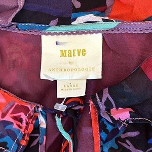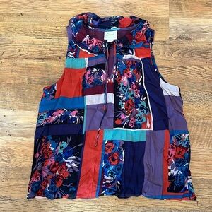 Maeve Multi Color/Pattern Sleeveless Blouse Ruffled Neckline Tie Front A36