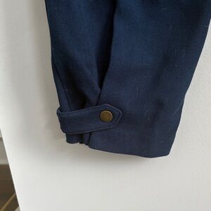Stylish navy blue trousers by Maeve. Features a button closure and rolled cuffs. Perfect for any occasion.