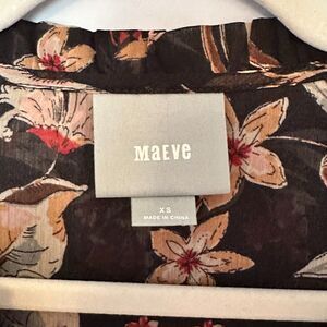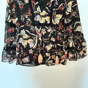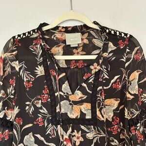 Maeve Odette Floral Peasant Blouse Womens XS Black Boho Whimsigoth Sheer Tassels