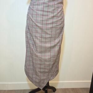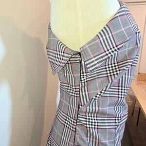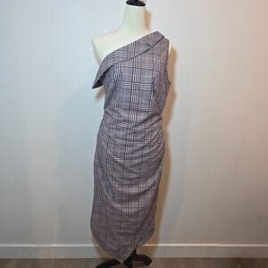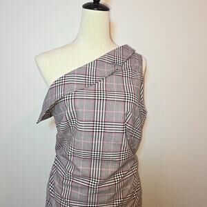 Maeve One Shoulder Dress Womens Size 10 Black Pink Plaid Asymmetric Side Slit