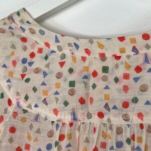 Maeve Paccia Geometric Shapes Button Ruffle Tunic Top shirt. Super romantic and cottagecore like. Used condition. Please see photos. Size medium. M.