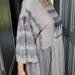 This beautiful Maeve dress features intricate patterns for a sophisticated look. Perfect for any occasion, it offers both style and comfort.