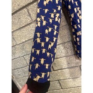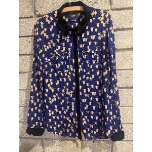 Maeve Penguin Print Button-Up Blouse Size 8 Blue & Beige With Black Accents
