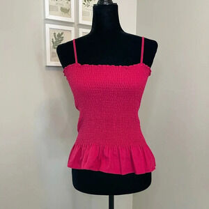 Maeve Pink Smocked Peplum Ruffle Tank Top