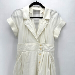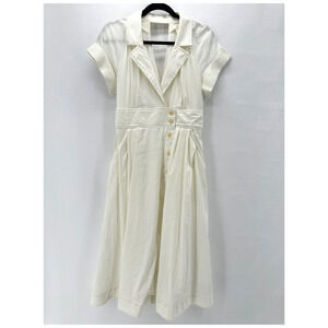Maeve Poplin Midi Shirt Dress Womens 8 Ivory Front Slit Preppy Old Money Cottage