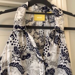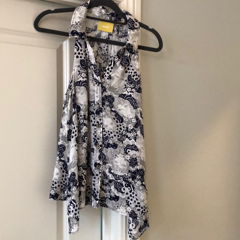 Anthropologie Maeve brand thin rayon and flowy tank. Perfect for spring and summer! The pattern is dark blue and cream.