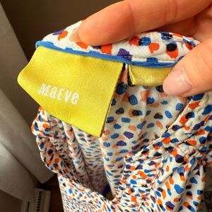 Elevate your style with the Maeve blouse, featuring a relaxed fit and a notched collar. This top showcases a harmonious blend of red and blue hues, perfect for adding a pop of color to your ensemble. Crafted with a focus on comfort and elegance, it's an ideal choice for both casual and semi-formal occasions.