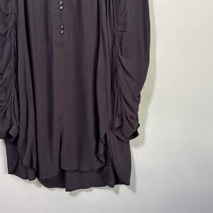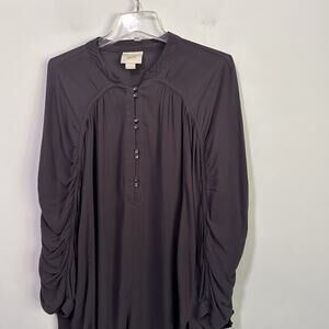Maeve Ruched Sleeve Tunic Top L Gray Half Button Anthropologie Rayon Boho Casual