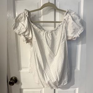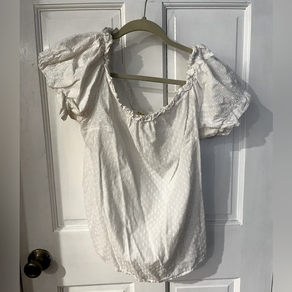 Maeve short sleeved white blouse. Cute with high waisted jeans and shorts.