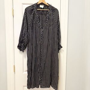 Maeve Sara Anthropologie Dress 3X Black Plaid 3/4 Sleeve Button front