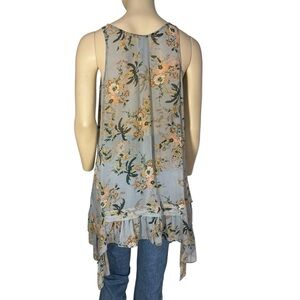 Maeve Sheer Flowy Floral Tunic Ruffle Bottom Women’s Size Medium
