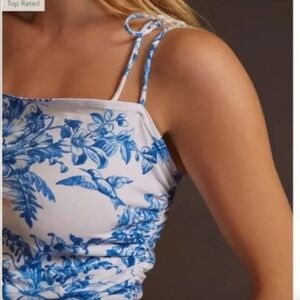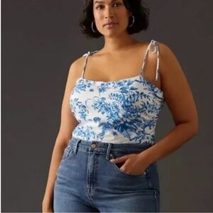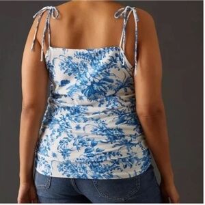 Maeve Shirred Tie-Shoulder Boho Toile Hipster Hippie Peasant Modern Hip Blouse