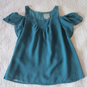 Maeve Shirt 0 Tavin Turqoise Cold Shoulder Back Keyhole. This shirt is in a gently worn condition with no rips or stains.
