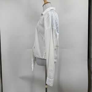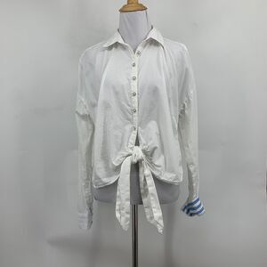 MAEVE SHIRT WOMENS 10 WHITE BUTTON UP TIE FRONT FLIP CUFFS STRIPE ANTHROPOLOGIE