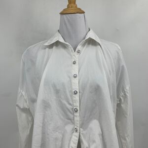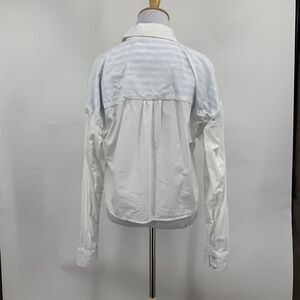 Maeve Shirt Womens 10 White Button Up Tie Front Flip Cuffs Stripe Anthropologie