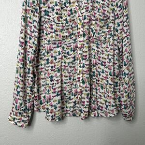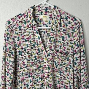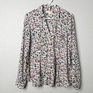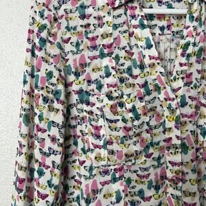 Maeve Shirt Womens 8 White Butterfly Print Button Up Long Sleeve Rayon