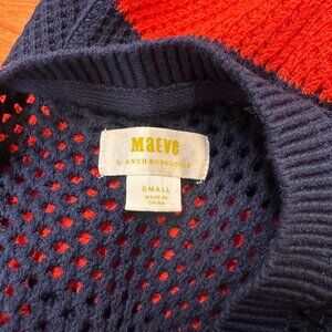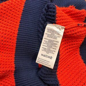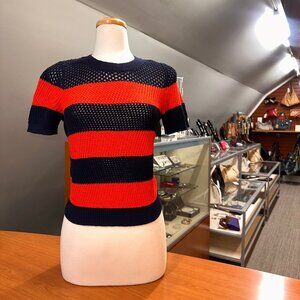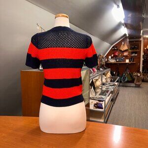 Maeve (Anthropologie) Short Sleeve Pullover Sweater - redish orange and dark blue stripes.