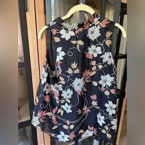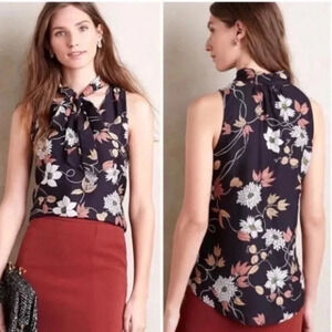 Maeve Silk Blouse Floral tie front bows vneck sleeveless tank top Anthropologie