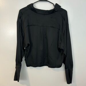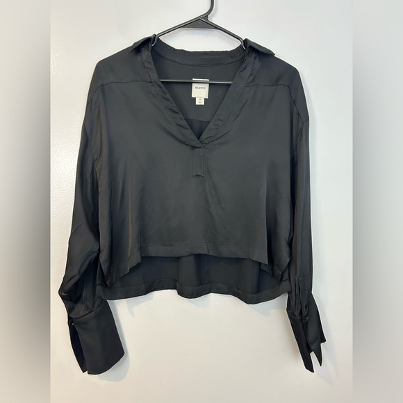 Maeve Silky Collared Popover Black Cropped Long Sleeve Blouse Size XS