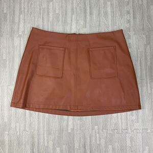 Maeve Skirt Women 2X Plus Cinnamon Faux Leather A Lined Pocket Anthropologie