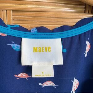 This Maeve tank top showcases a vibrant blue and white color palette with a delightful pattern, perfect for a summery vibe. The sleeveless design and scoop neckline ensure a comfortable and chic fit, ideal for warm weather. Made from a flowy fabric, this top effortlessly blends elegance with a casual flair.